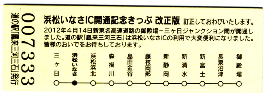 007301~007600 デザインきっぷ(浜松いなさIC開通記念改正版)