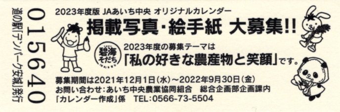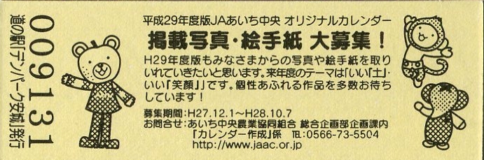 015601~015900 180円きっぷ(JAあいち中央オリジナルカレンダー)