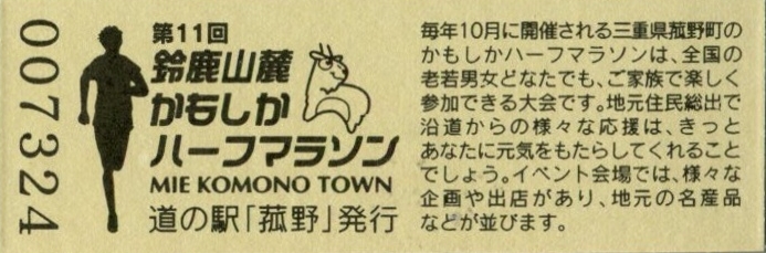 007301~007600 180円きっぷ(鈴鹿山脈かもしかハーフマラソン)