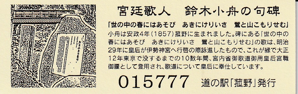 015701~016000 200円きっぷ(宮廷歌人 鈴木小舟の句碑)
