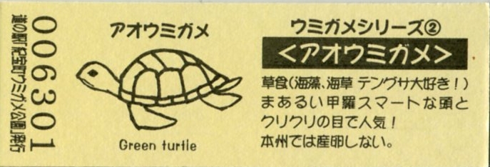 005001~005300 180円きっぷ(KIHO TOWN SEA TURTLE PARK)
