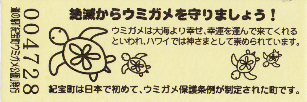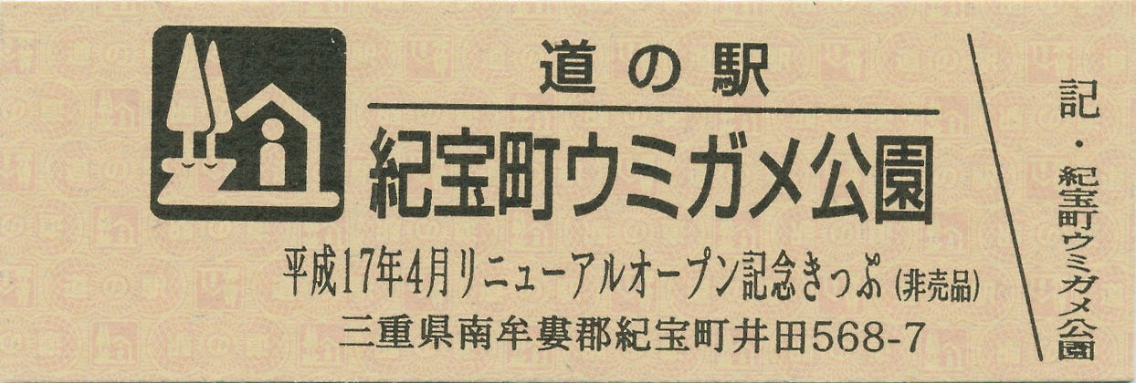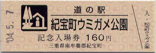 007201~007500 180円きっぷ(道の駅紀宝町ウミガメ公園)