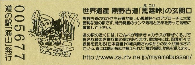 005401~005700 180円きっぷ(イラスト左・住所海山区無し)