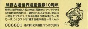 006601~007100 180円きっぷ(熊野古道世界遺産登録10周年)