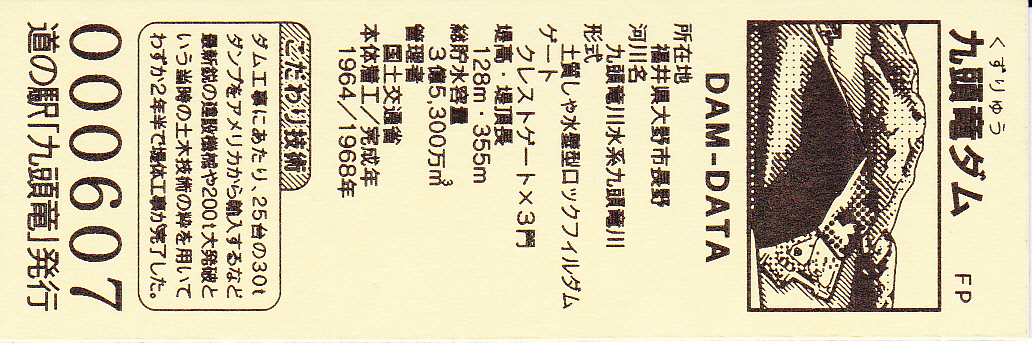 000601~000900 (特)九頭竜湖ダムカード特別記念きっぷ