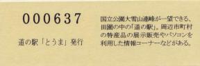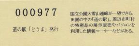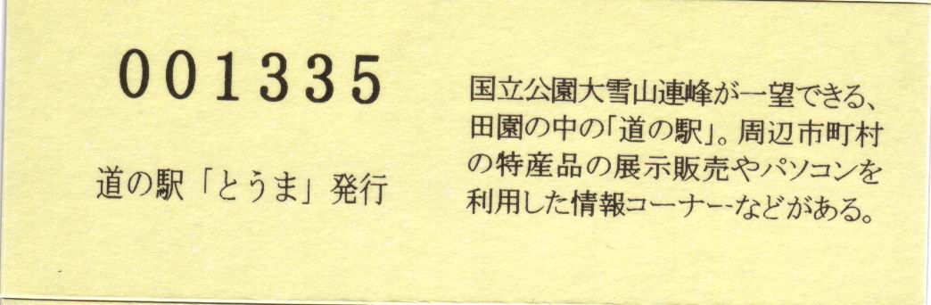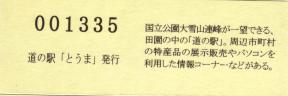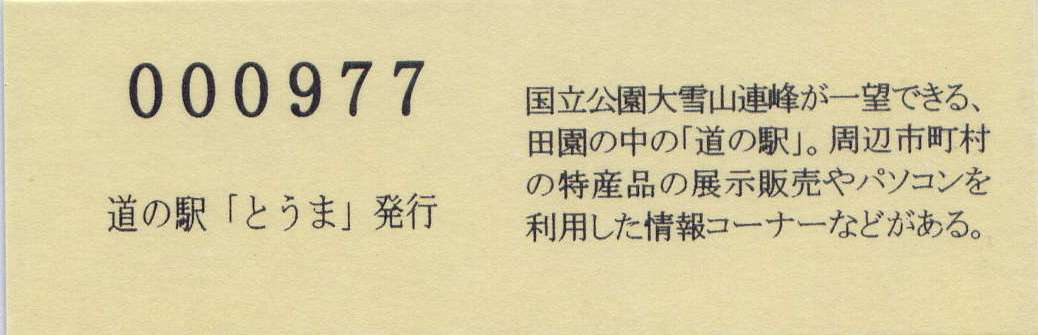 000001-000500:記念入場券(ピンク券) 000501-000700:記念入場券(通常券) 000701-001300:記念きっぷ(入) 001301-002500:記念きっぷ(記) 002501-002800:デザインきっぷ(でんすけ・横・左) 002801-003900:デザインきっぷ(でんすけ・横・右) 003901-004500:デザインきっぷ(でんすけ・縦) 004501-005800:デザインきっぷ(カントリーサイン・左) 005801-006100:デザインきっぷ(カントリーサイン・右) 006101-011000:180円きっぷ 011001- :200円きっぷ