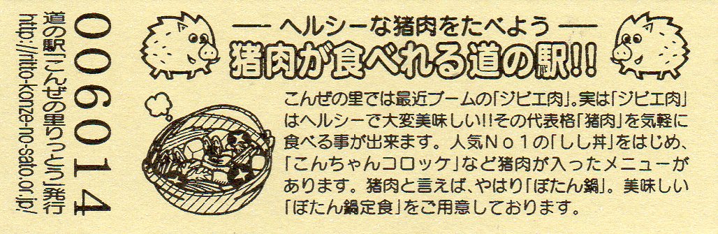 006001~009000 180円きっぷ(猪肉が食べれる道の駅!!冬期限定無し)