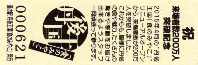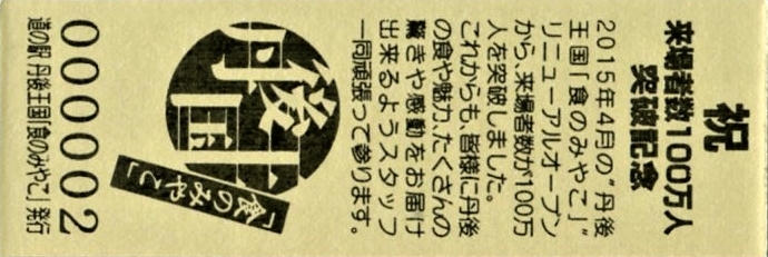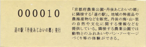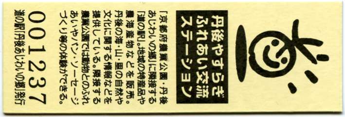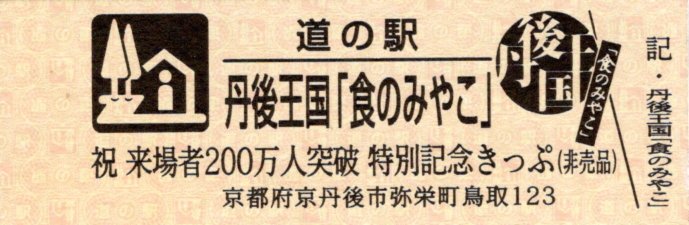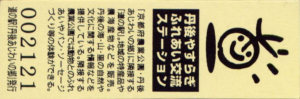 | 備考 | 駅名変更 (2015.04.19) 丹後あじわいの郷 → 丹後王国「食のみやこ」 平成27年度選定 重点「道の駅」 Tango Ajiwai no Sato Park |