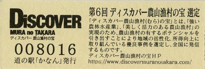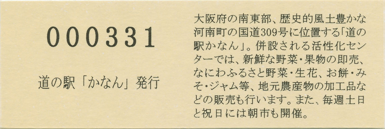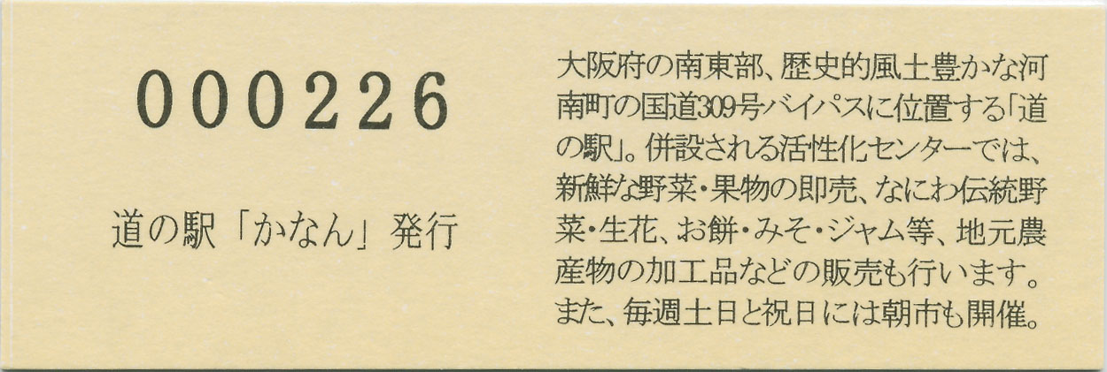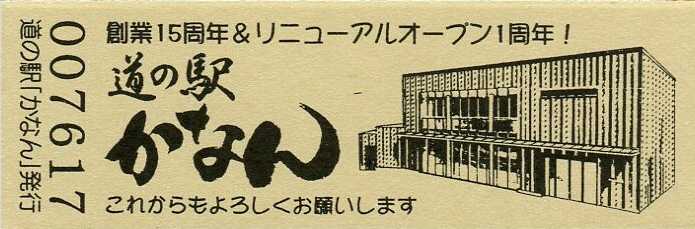 000601~001200 デザインきっぷ(ようこそ道の駅かなんへ・左)