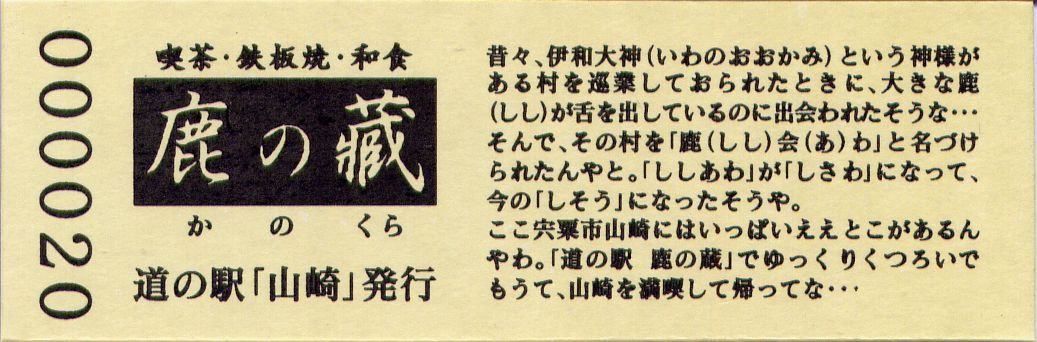 000001~000500 デザインきっぷ(鹿の蔵・横書き)