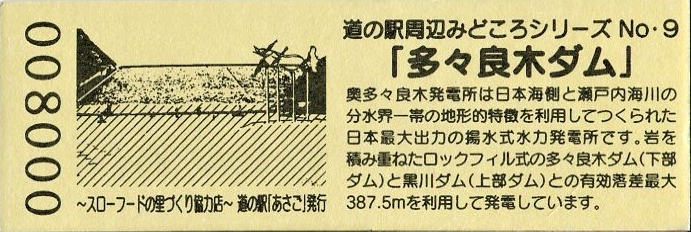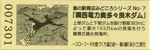 007301~007600 180円きっぷ(関西電力奥多々良木ダム)