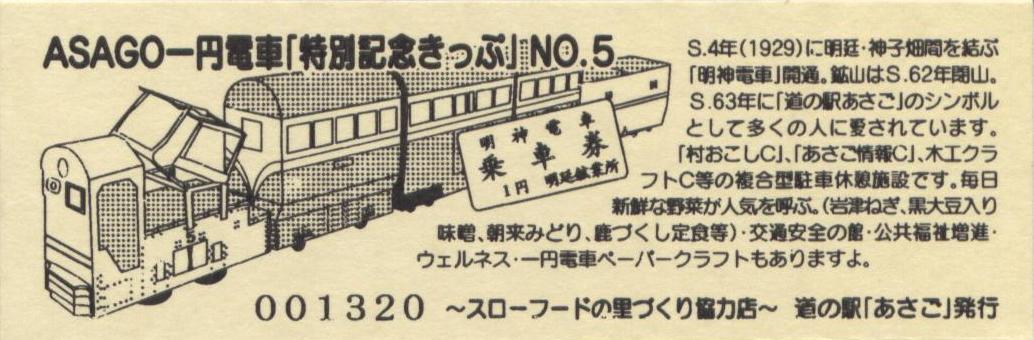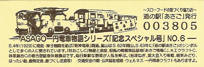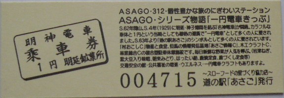 001301~001600 (特)ASAGO一円電車特別記念きっぷ