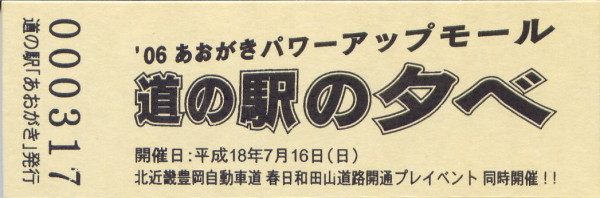001301~001600 (特)2008道の駅の夕べ入場記念切符