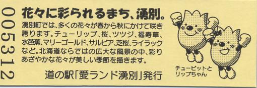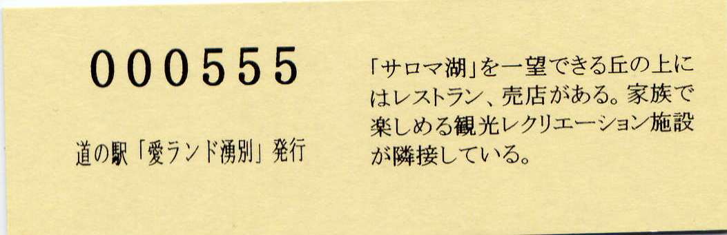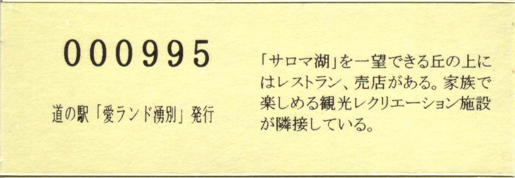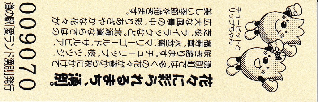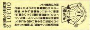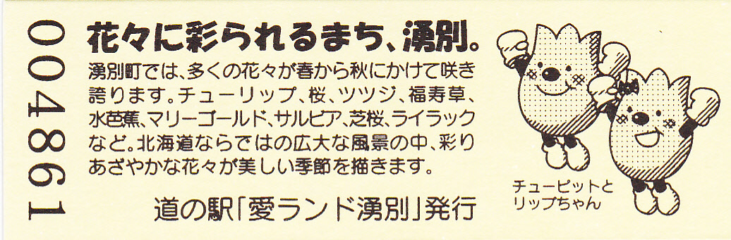 0001-0300:記念入場券(通常券) 0301-0900:記念きっぷ(入) 0901-1200:記念きっぷ(記)<住所左> 1201-2400:記念きっぷ(記)<住所中央> 2401-2700:デザインきっぷ(スタンプ・横・左) 2701-3000:デザインきっぷ(スタンプ・横・右) 3001-3600:デザインきっぷ(スタンプ・縦) 3601-4500:デザインきっぷ(チューリップとホタテ・縦) 4501-4800:デザインきっぷ(チューリップとホタテ・横・左) 4801-5200:デザインきっぷ(チューピットとリップちゃん) 5201-5400:180円きっぷ(チューピットとリップちゃん・横) 5401-9000:180円きっぷ(チューピットとリップちゃん・縦) 9001- :200円きっぷ(チューピットとリップちゃん・縦)