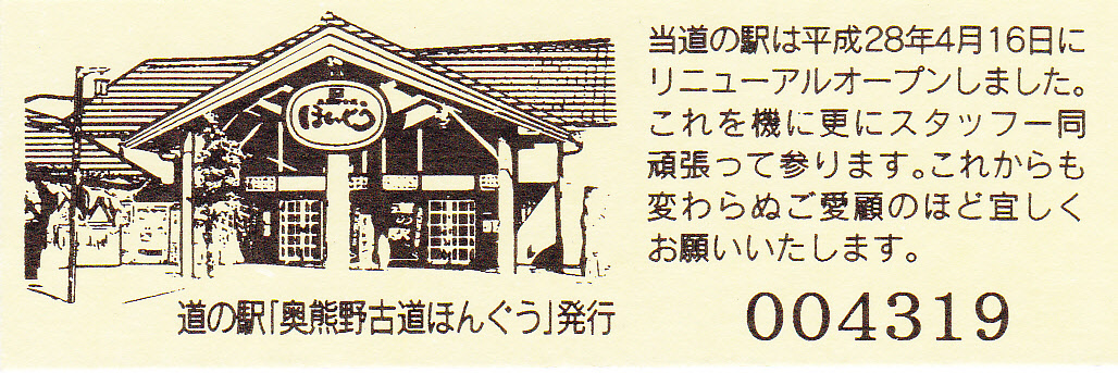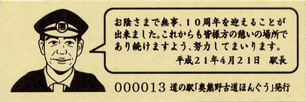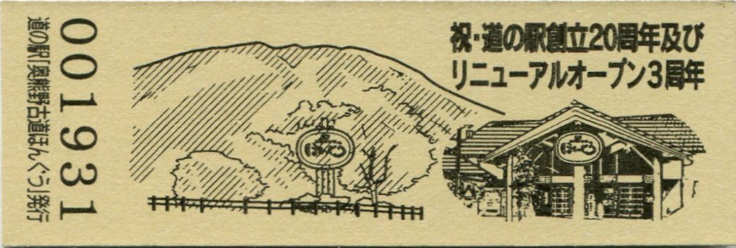 001901~002200 (特)道の駅創立20周年及びリニューアルオープン3周年記念切符