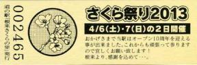 002401~002700 (特)さくら祭り2013記念きっぷ