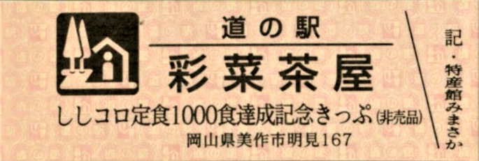 000301~ (特)ししコロ定食1000食達成記念きっぷ