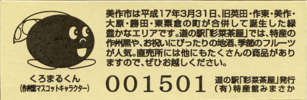001501~001800 デザインきっぷ(くろまるくん・美作市の説明)