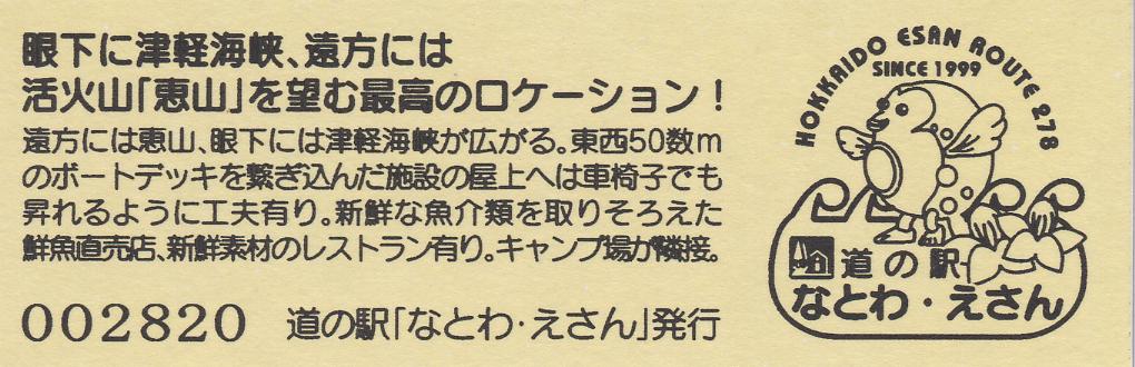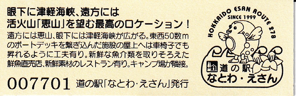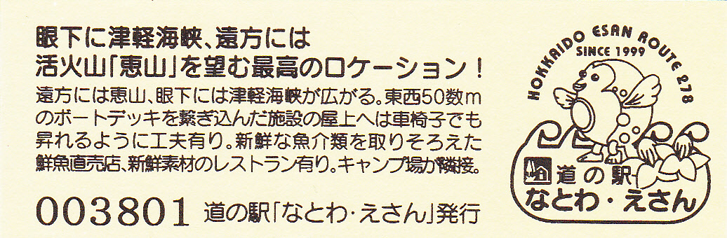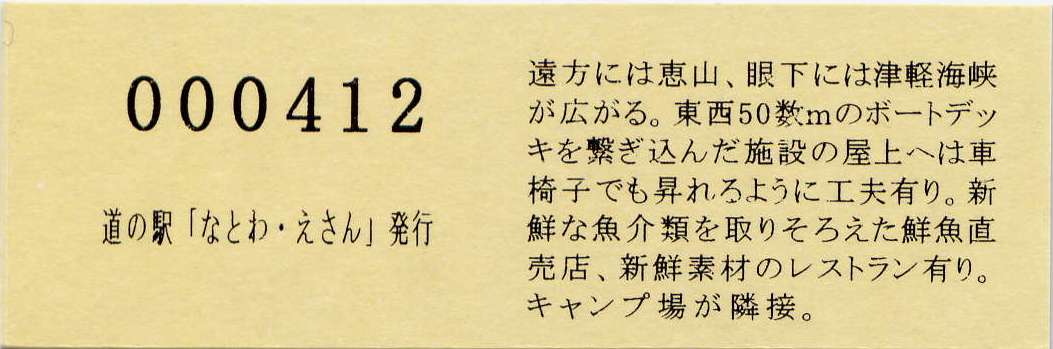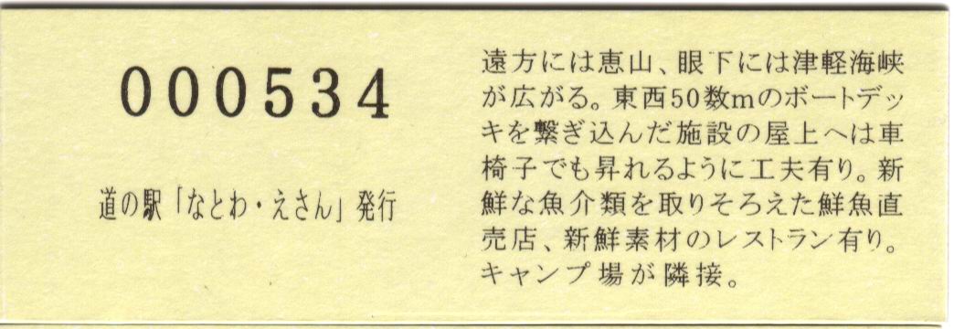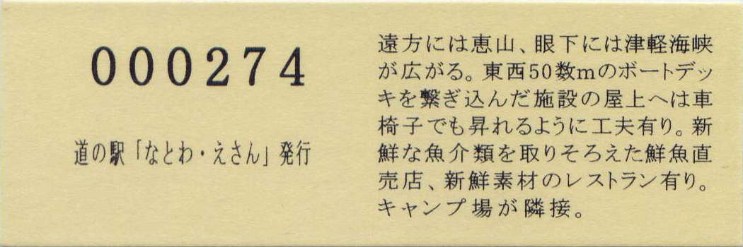 0001-0300:記念入場券(通常券) 0301-0531:記念きっぷ(入) 0532-0600:記念きっぷ(記・函館市)<住所左> 0601-0900:記念きっぷ(記・函館市)<住所中央> 0901-1600:記念きっぷ(記・函館市)<住所中央その2> 1601-2800:デザインきっぷ(イラスト左) 2801-3700:デザインきっぷ(イラスト右) 3701-7600:180円きっぷ 7601- :200円きっぷ