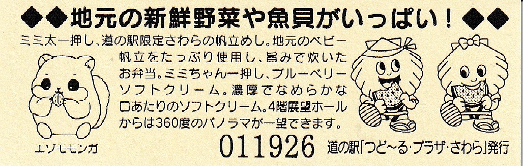 011901~ 200円きっぷ(地元の新鮮野菜や魚貝・エゾモモンガ・ミミちゃんミミ太・すいか)