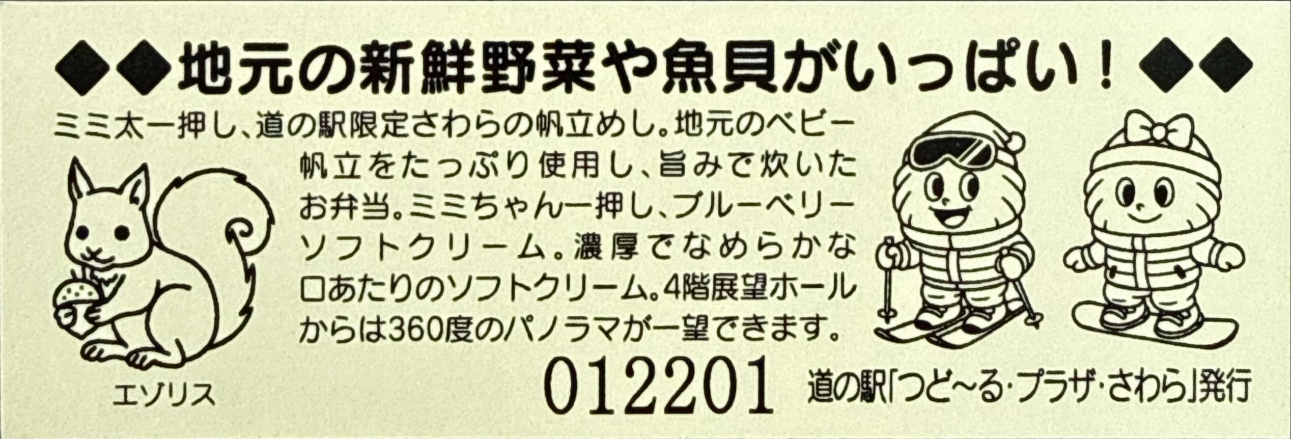 012201~ 200円きっぷ(地元の新鮮野菜や魚貝・エゾリス・ミミちゃんスノーボード・ミミ太スキー)