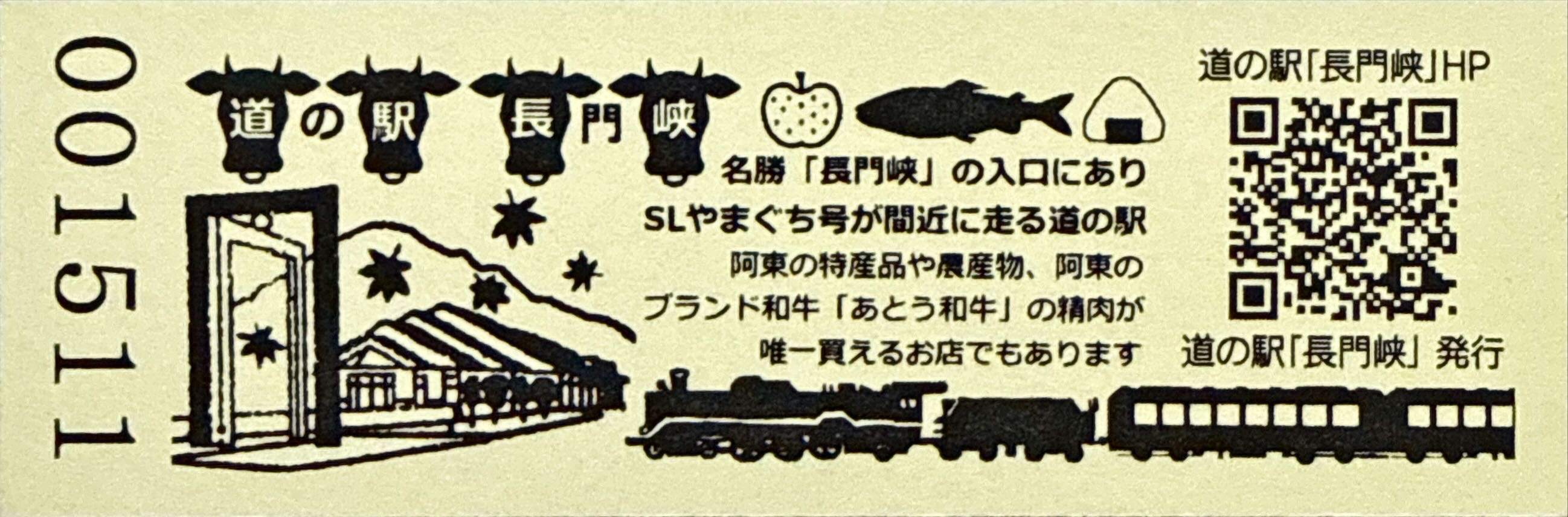200円きっぷ(名勝長門峡の入口にあり)