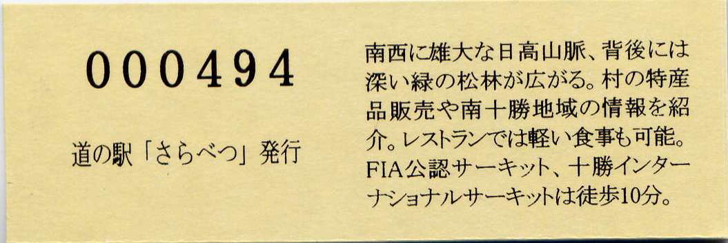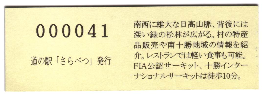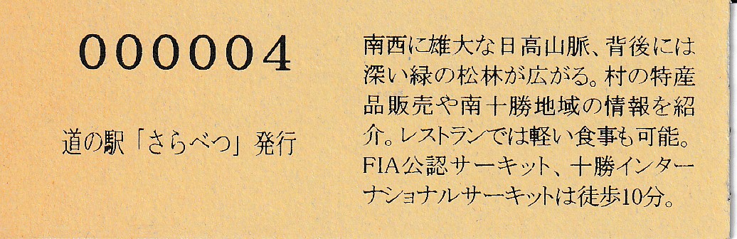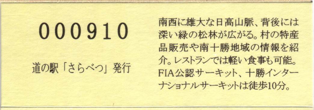0001-????:記念入場券(ピンク券) ????-0300:記念入場券(通常券) 000301-000900:記念きっぷ(入) 000901-002000:記念きっぷ(記) 002001-002700:デザインきっぷ(南十勝の情報) 002701-003300:デザインきっぷ(カシワ) 003301-003600:デザインきっぷ(すずらん) 003601-003900:デザインきっぷ(ヒバリ) 003901-004500:デザインきっぷ(ピパポ) 004501-004800:デザインきっぷ(特産品販売コーナー) 004801-008900:180円きっぷ 008901- :200円きっぷ