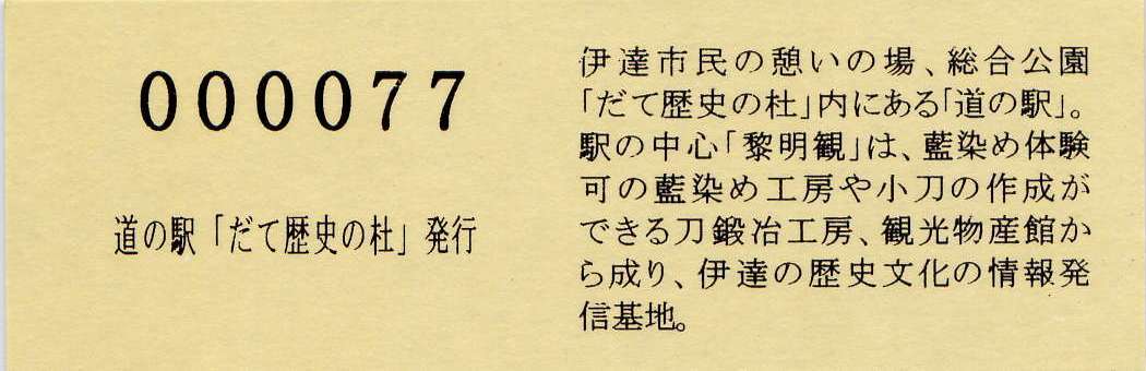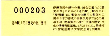 000601~000900 (特)伊達市観光物産館1周年記念きっぷ
