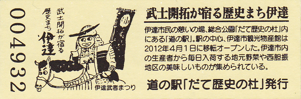 001201~001500 (特)伊達市観光物産館4周年記念きっぷ(2015)