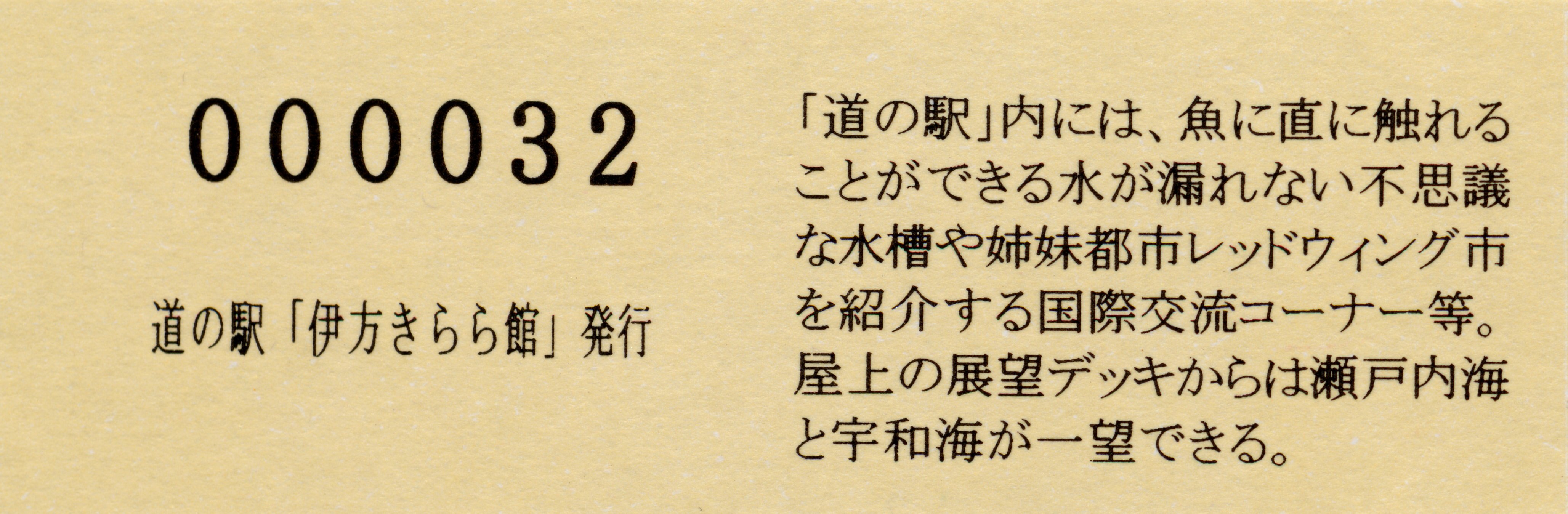 000001~000300 (特)新・伊方町入場記念きっぷ ![]() | |