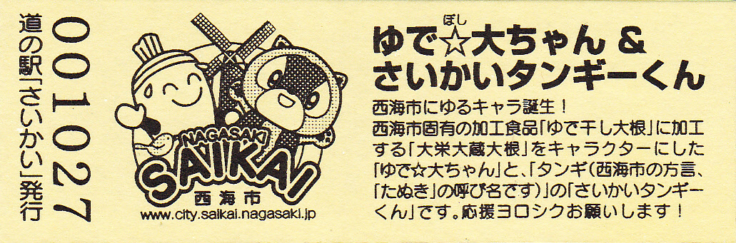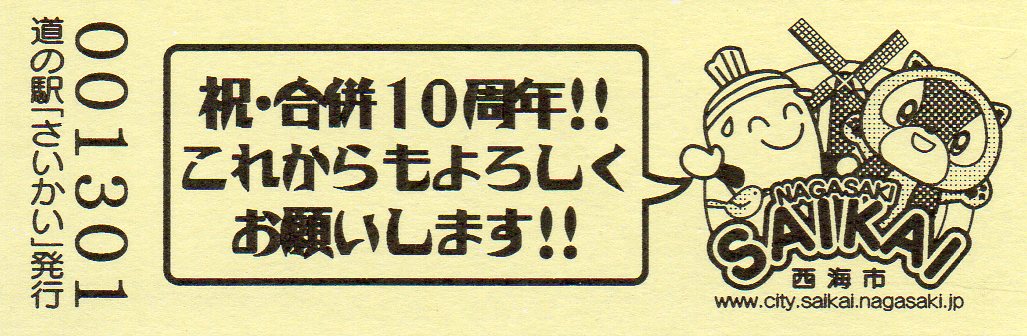 001001~001300 (特)西海市ゆるキャラ誕生記念きっぷ
