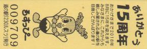 000001-000300:開駅11周年記念きっぷ(配布終了) 000301-000600:開駅12周年記念きっぷ(配布終了) 000601-000900:開駅13周年記念きっぷ(配布終了) 000901-001200:開駅14周年記念きっぷ(配布終了) 001201-001500:開駅15周年記念きっぷ(配布終了) 001501-001800:開駅16周年記念きっぷ(配布終了) 001801-002100:開駅17周年記念きっぷ(配布終了) 002101-002400:開駅18周年記念きっぷ(配布終了) 002401-002700:開駅19周年記念きっぷ(配布終了) 002701-003000:開駅20周年記念きっぷ(配布終了) 003001-003300:開駅21周年記念きっぷ(配布終了) 003301-003600:リニューアルオープン(配布終了)