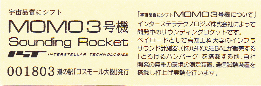 000901~001400 (特)Sounding Rocket MOMO 初号機打上げ実験記念きっぷ