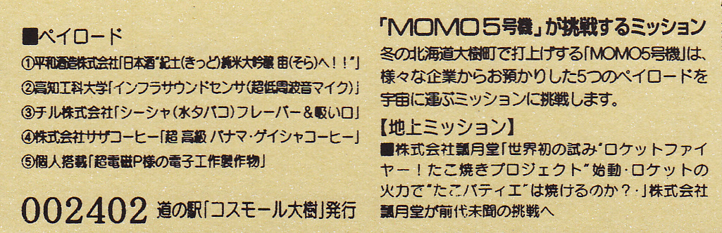 002401~002700 (特)MOMO5号機打上げ実験記念きっぷ