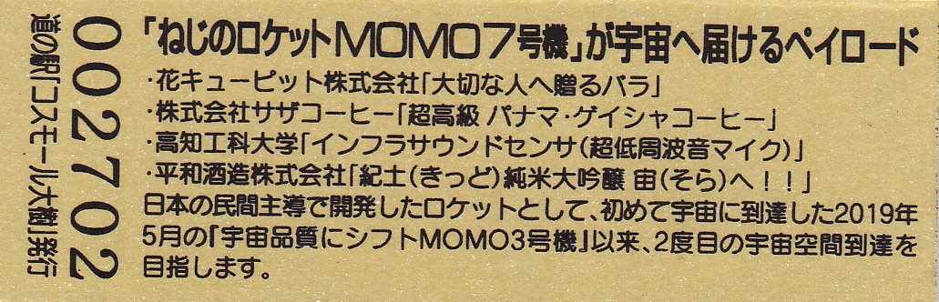 002701~003000 (特)ねじのロケットMOMO7号機打上げ実験記念きっぷ