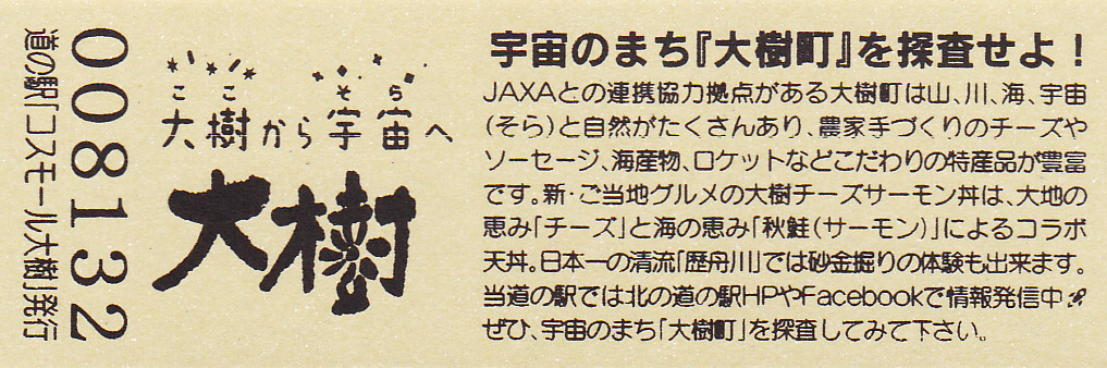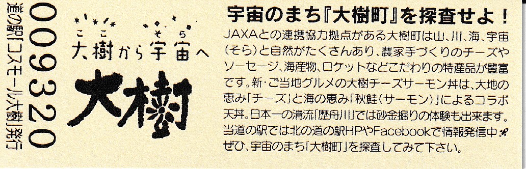 008101~009300 180円きっぷ(大樹から宇宙へ・北の道の駅HPやFacebookで情報発信中)