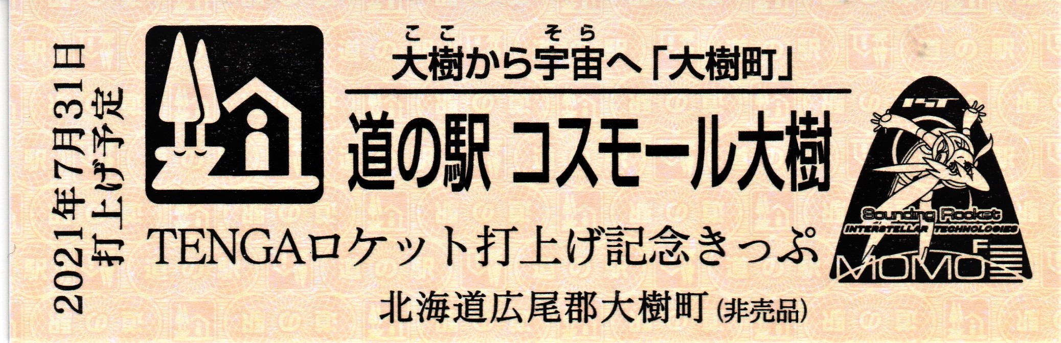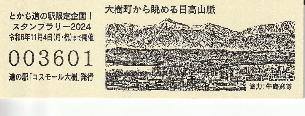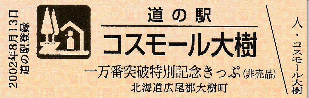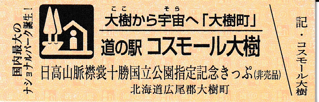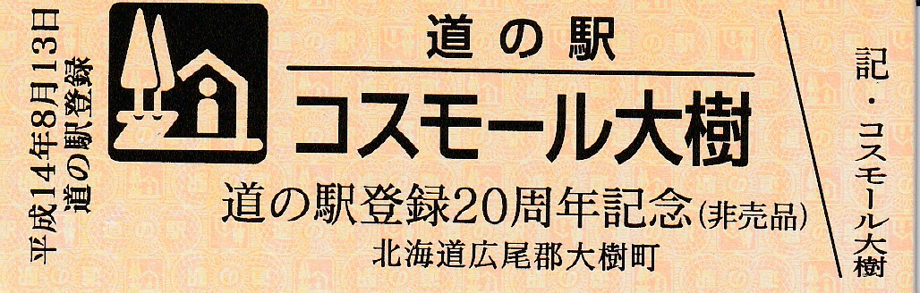 000001-000300:帯広・広尾自動車道忠類大樹IC開通記念きっぷ(配布終了) 000301-000900:新・ご当地グルメグランプリ北海道2016in大樹開催記念きっぷ(配布終了) 000901-001400:Sounding Rocket MOMO 初号機打上げ実験記念きっぷ(配布終了) 001401-001700:Sounding Rocket MOMO2 2号機打上げ実験記念きっぷ(配布終了) 001801-002100:宇宙品質にシフトMOMO3号機打上げ実験記念きっぷ(配布終了) 002101-002400:ペイターズドリームMOMO4号機打上げ実験記念きっぷ(配布終了) 002401-002700:MOMO5号機打上げ実験記念きっぷ(配布終了) 002701-003000:ねじのロケットMOMO7号機打上げ実験記念きっぷ(配布終了) 003001-003300:TENGAロケット打上げ記念きっぷ(配布終了) 003301-003600:道の駅登録20周年記念(配布終了) 003601-003900:日高山脈襟裳十勝国立公園指定記念きっぷ(配布終了) 003901-004200:一万番突破特別記念きっぷ(配布終了)