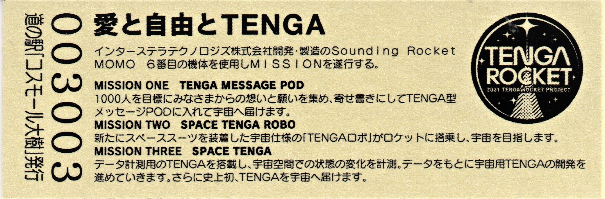 003001~003300 (特)TENGAロケット打上げ記念きっぷ