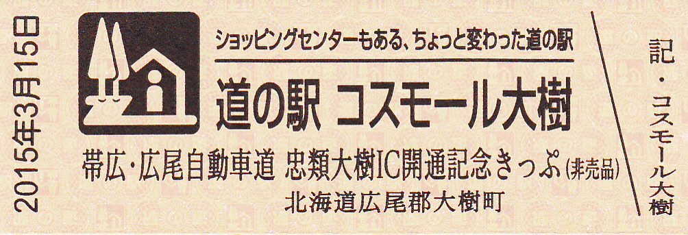 000001~000300 (特)帯広・広尾自動車道 忠類大樹IC開通記念きっぷ