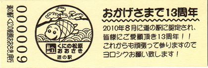 000001~ (特)道の駅認定13周年記念きっぷ ![]() | |