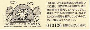 008701~009000 180円きっぷ(らぶちゃん・蘭越町開基120年記念)