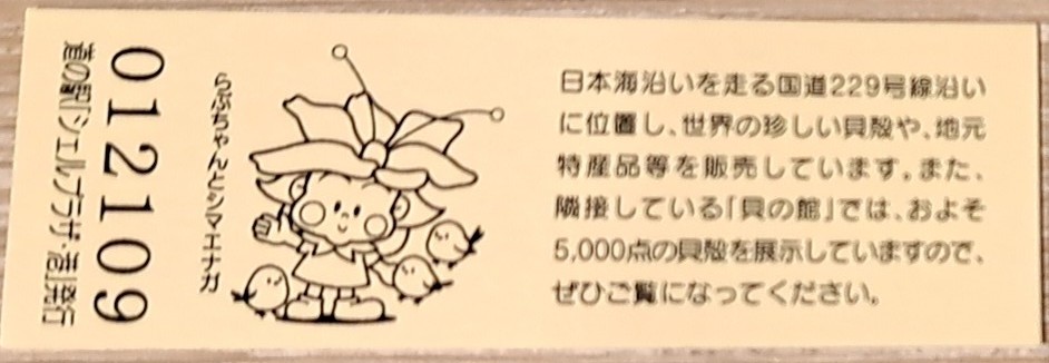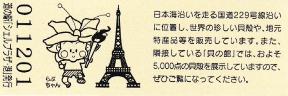 010901~011200 200円きっぷ(らぶちゃん・貝の館)