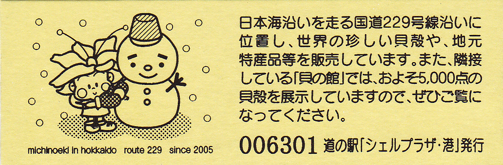 006001~006300 180円きっぷ(蘭越町貝の館)