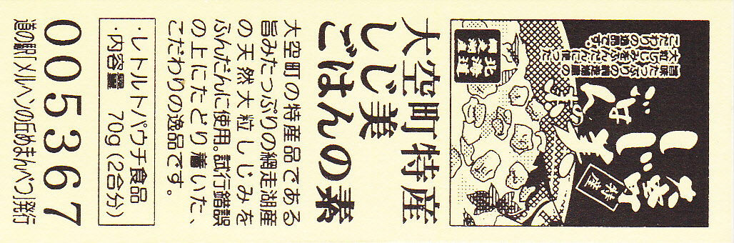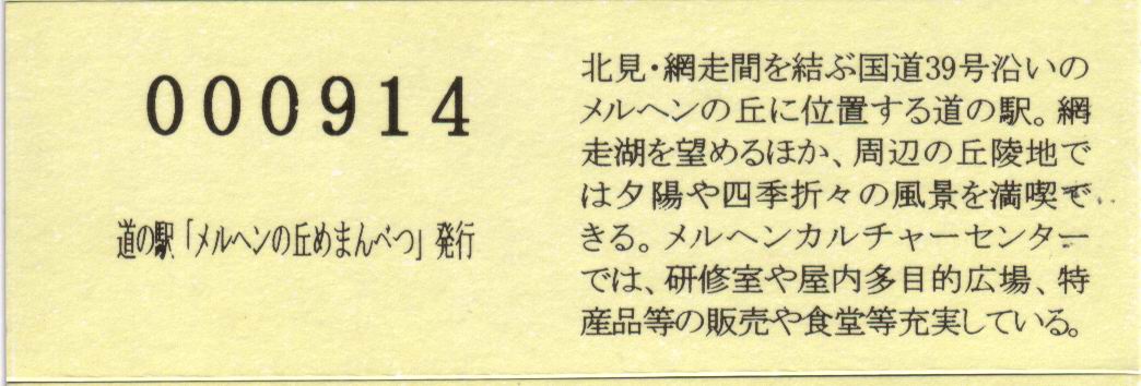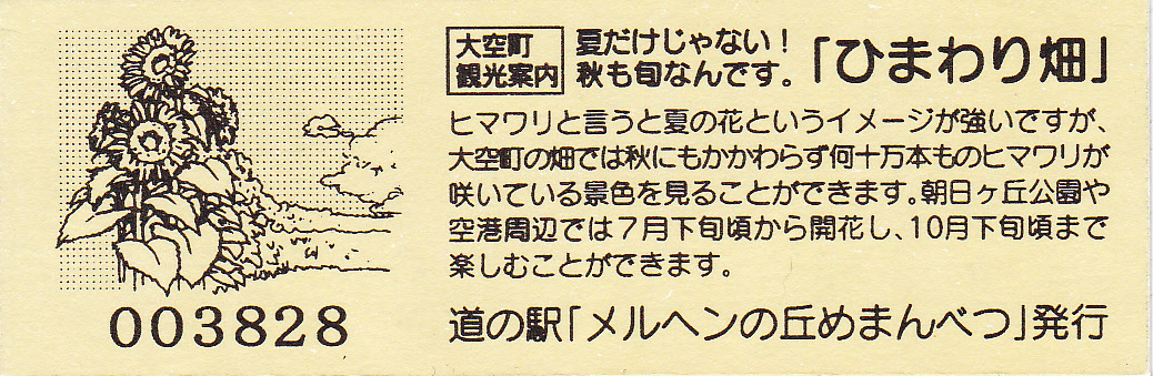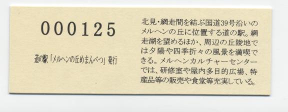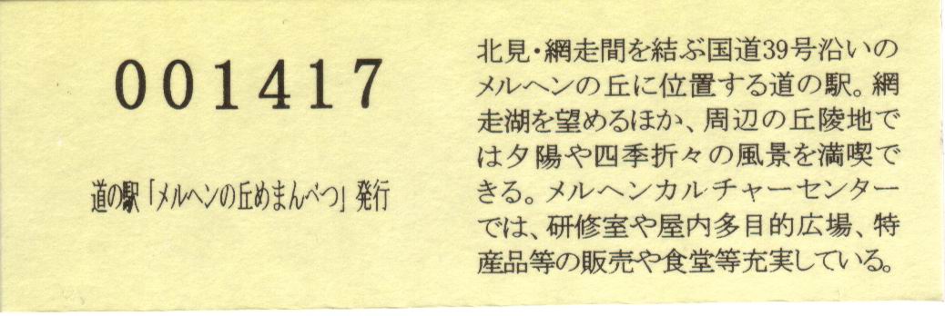 000001-000900:記念きっぷ(入) 000901-001200:記念きっぷ(記・女満別町)<住所左> 001201-001400:記念きっぷ(記・女満別町)<住所中央> 001401-002300:記念きっぷ(記・大空町) 002301-003800:デザインきっぷ(カントリーサイン) 003801-004100:デザインきっぷ(ひまわり畑) 004101-004400:デザインきっぷ(スタンプ・左) 004401-004700:デザインきっぷ(スタンプ・右) 004701-005300:デザインきっぷ(サクラ豚丼) 005301-009900:180円きっぷ 009901- :200円きっぷ