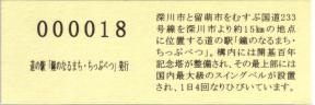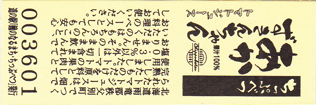 000001-000300:道の駅OPEN記念きっぷ(配布終了) 000301-000600:1周年記念きっぷ(配布終了)