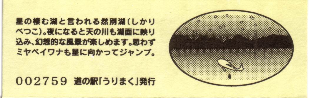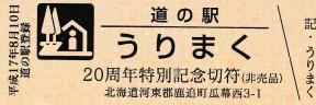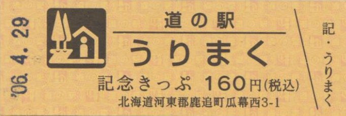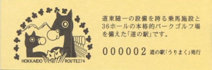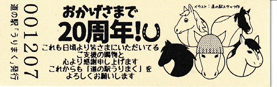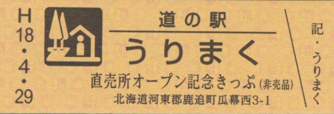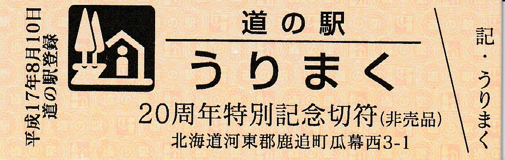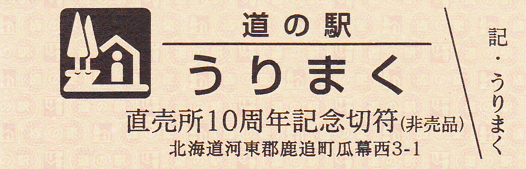 000001-000300:直売所オープン記念きっぷ(配布終了) 000301-000600:一周年記念きっぷ(配布終了) 000601-000900:直売所10周年記念切符(配布終了) 000901-001200:日高山脈襟裳十勝国立公園指定記念きっぷ(配布終了) 001201-001500:20周年特別記念切符(配布中)