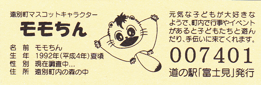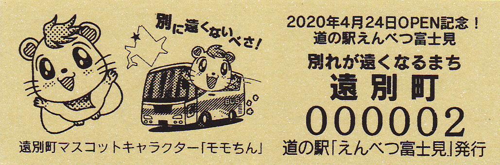 0001-1700:180円きっぷ(遠別町マスコットキャラクター「モモちん」) 1701- :200円きっぷ