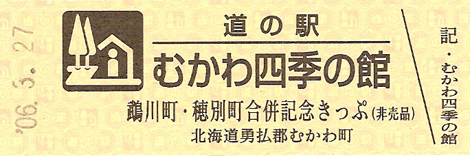 000001-000300:鵡川町・穂別町合併記念きっぷ(配布終了) 000301-000600:むかわ町合併10周年記念きっぷ(配布終了)