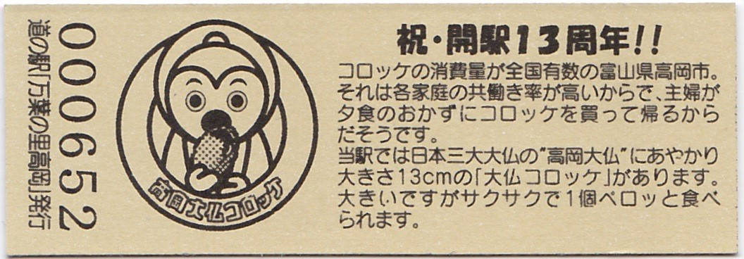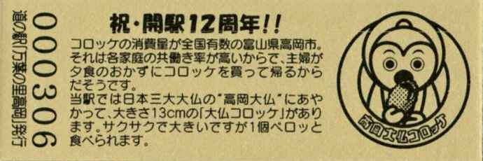 002701~003000 デザインきっぷ(高岡大仏コロッケ・左・説明有り)
