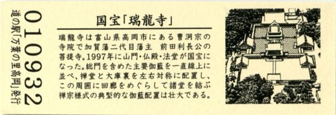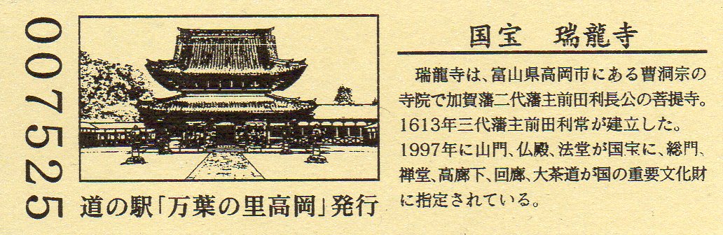 010801~011200 180円きっぷ(国宝「瑞龍寺」)
